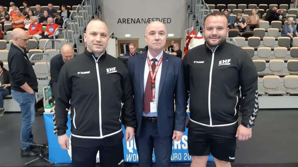 Dyshja kosovare e gjyqtarëve të hendbollit, Eshref Beqiri – Ilir Krasniqi, ka drejtuar ndeshje me rëndësi të shtunën mbrëma. Beqiri e Krasniqi ishin të angazhuar në Norvegji, ku u luajt gjysmëfinalja e parë e Kupës Evropiane për hendbollistë. U takuan skuadrat norvegjeze, Drammen HK dhe Naerbo IL. Fitore me rezultat 30:27 shënoi skuadra vendase. Gjyqtarët […]